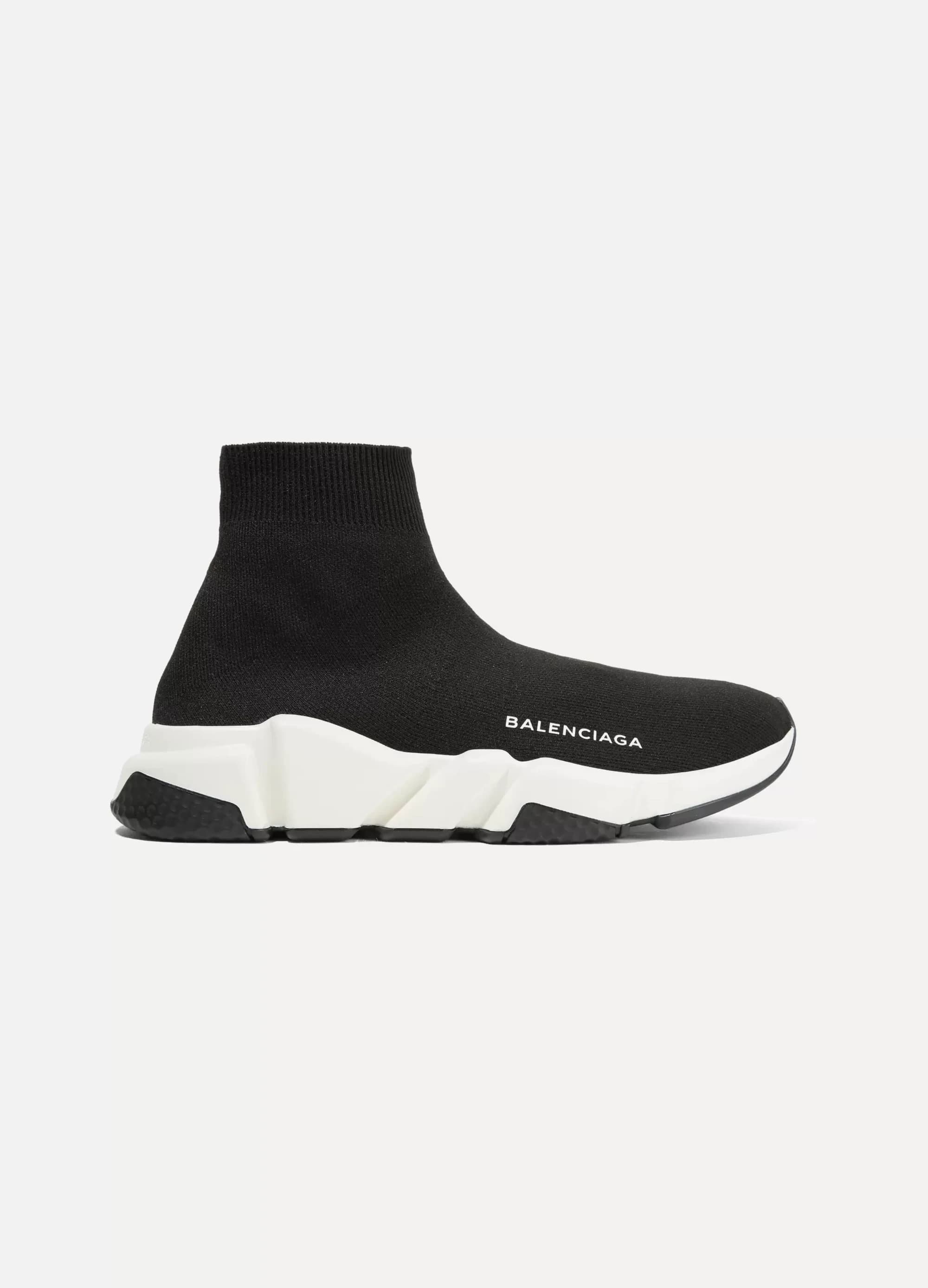 Sometimes, weight is overlooked when talking about comfort but, trust me, wearing a light shoe is way more comfortable than wearing a heavy shoe. The comfort of wearing a light shoe is unmatched – sometimes, heavy shoes like a Timberland 6-inch boot are so uncomfortable to wear because it just seems you have to drag them across the floor. So here comes the big reveal – the Balenciaga Speed Runners weigh a minuscule 240g. This is basically nothing – an iPhone weighs around 160g so this is just 1.5 times that. If you put these shoes on after putting on a pair of Timberland boots, your feet will thank you (and me!). The minimalistic design of the Balenciaga Speed Runners is another key to their success – they don’t feature too much branding so the shoes look classy in a way. The simple ‘BALENCIAGA’ features on the side of the shoe and an embossed logo is seen on the back of the shoe. I think that the simple and effective design of this shoe revolutionised shoe design in a way and I think that the Speed Runner opened peoples eyes to luxury brands instead of the typical Nike, Jordan and Yeezy.