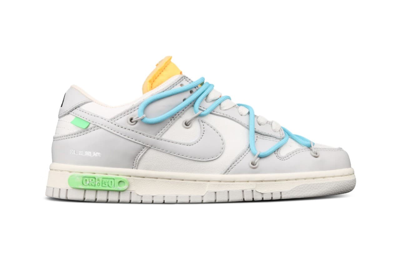 The next pack of Nike Dunks on this list is another Nike x Off White collaboration – this time for 50 pairs. Yes, you heard me right – 50 pairs. The creative minds at Off White and Nike teamed up once again to release the ‘Dear Summer’ pack. 49 out of the 50 pairs feature a white and grey colour scheme with subtle differences between all the pairs – white canvas or leather makes up the base of the upper for 49 out of the 50. The overlays for the Nike Dunks x Off White ‘Dear Summer’ pack are in either suede or leather but in the same grey colourway. The differences between the pairs comes in the insoles and the vibrant accents on the outside of the shoe – you’ll have to see it to understand what I truly mean but basically, the lacing and zip ties are different colours in all of them which either makes the shoe stand out or it makes it stealthy. The 50th pair from the ‘Dear Summer’ pack is black with a metallic swoosh – almost immediately, everyone’s eyes went to this pair because they stood out the most from the pack of 50. Each pair has variations in lace, tongue, sock liner, zip tie and they all have different ‘lot’ numbers. Overall, the pack was a huge success – many people were able to snag a pair and most pairs are still affordable today if you want to grab one now. Lot number 1 and 50 are the only ones that have been going in excess of $1000 still.