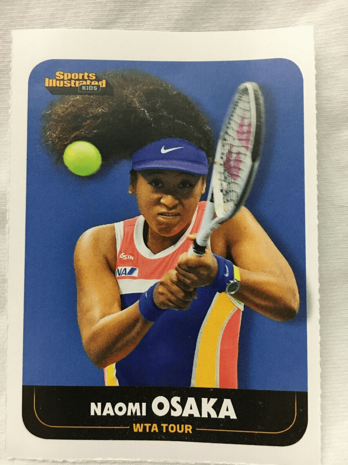 Tennis cards are primarily Topps or Net Pro. For example, Naomi Osaka has her rookie card from Topps 2018 and Serena Williams has her rookie card from the 2003 Net Pro set. Some rookie cards are also found in Sports Illustrated magazines as inserts.