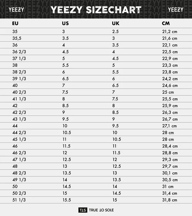 Some people need a visual like myself! That is why we are able to provide a size chart for all the Yeezys!